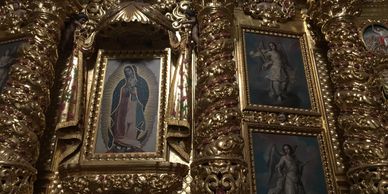 Pictured is a Spanish Colonial painting of the Virgin of Guadalupe
